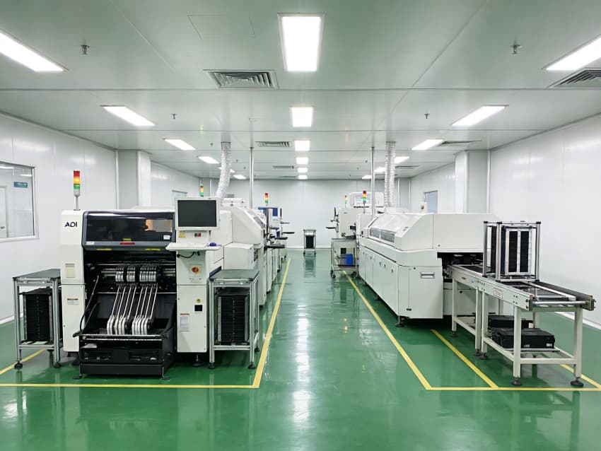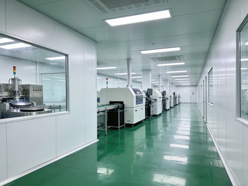 SMT 核心生產(chǎn)區(qū):針對高速貼片機、回流焊等設(shè)備做了地面承重加固與管線預(yù)埋,配置伸縮式通風(fēng)除塵管道,及時收集焊煙與粉塵;防靜電工作臺搭配 LED 工位燈,保障貼片、焊接的精度與效率。