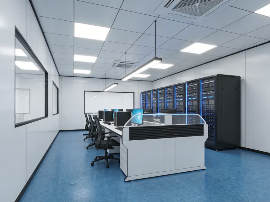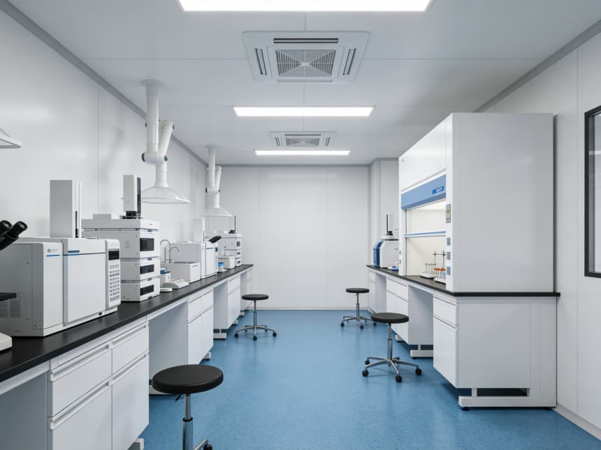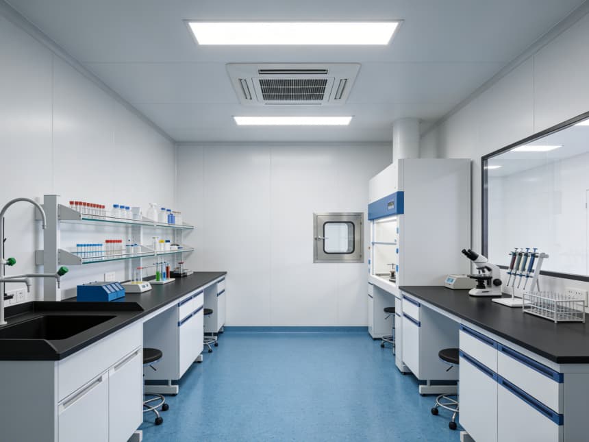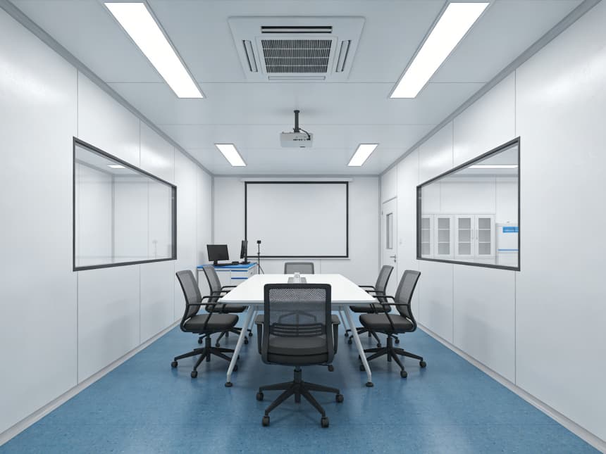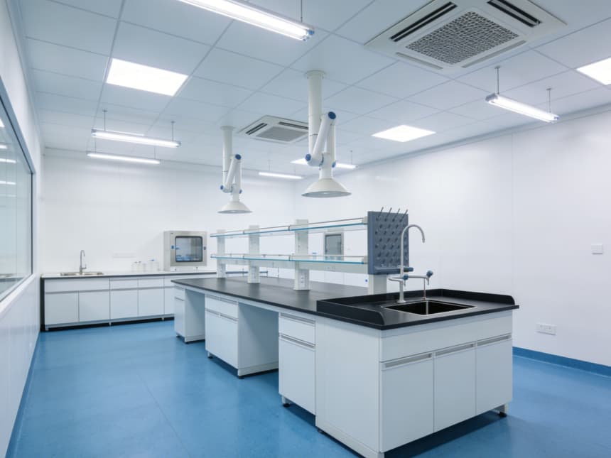 內(nèi)部研發(fā)空間均以藍(lán)色耐磨防靜電地坪搭配白色無(wú)縫抗菌墻面,視覺(jué)清爽且適配研發(fā)需求。藍(lán)色地面選用高耐磨環(huán)氧材質(zhì),具備良好的承重性與易清潔性,可耐受實(shí)驗(yàn)試劑殘留擦拭,同時(shí)兼具輕微防靜電性能,保護(hù)精密研發(fā)設(shè)備;白色墻面采用環(huán)保抗菌涂層,平整度高且減少光線(xiàn)反射,搭配嵌入式護(hù)眼照明,營(yíng)造舒適的研發(fā)視覺(jué)環(huán)境。