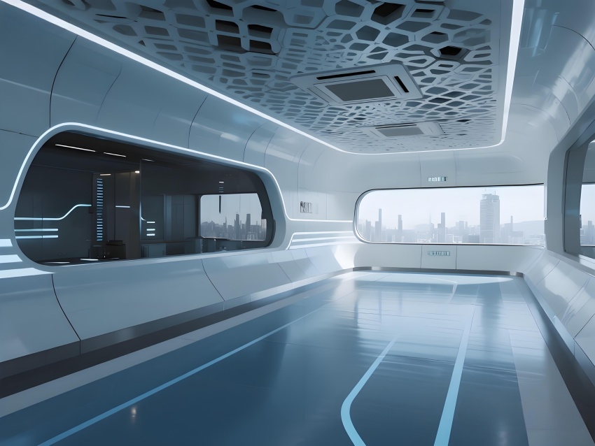 本車間空間以冰川藍(lán)與鈦白為主色調(diào),弧形墻角與無縫地坪構(gòu)成流暢的潔凈界面,頂部蜂窩狀FFU陣列形成科技感天花肌理。灌裝區(qū)透明亞克力防護(hù)罩展示自動(dòng)化生產(chǎn)線運(yùn)作,配合層流工作臺(tái)的紅色氣流可視化設(shè)計(jì),強(qiáng)化無菌核心概念。功能模塊通過地面灰色導(dǎo)視帶串聯(lián),設(shè)備區(qū)的鏡面不銹鋼與控制面板的藍(lán)色背光形成冷調(diào)光效。玻璃觀察窗嵌入電子壓差計(jì),走廊的漸變光環(huán)境引導(dǎo)系統(tǒng)在滿足GMP動(dòng)態(tài)監(jiān)測要求的同時(shí),營造出未來實(shí)驗(yàn)室般的專業(yè)氛圍,緩解員工長時(shí)間密閉作業(yè)的疲勞感。