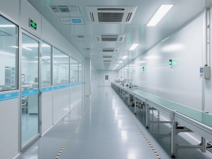 生產(chǎn)線配備全自動晶圓傳送機械臂、激光焊接設(shè)備,透明防塵罩與實時粒子計數(shù)器確保工藝穩(wěn)定性。走廊設(shè)置防靜電地板與人員凈化通道,風(fēng)淋時間嚴(yán)格控制在30秒,全方位滿足微電子元件的超高潔凈生產(chǎn)需求。