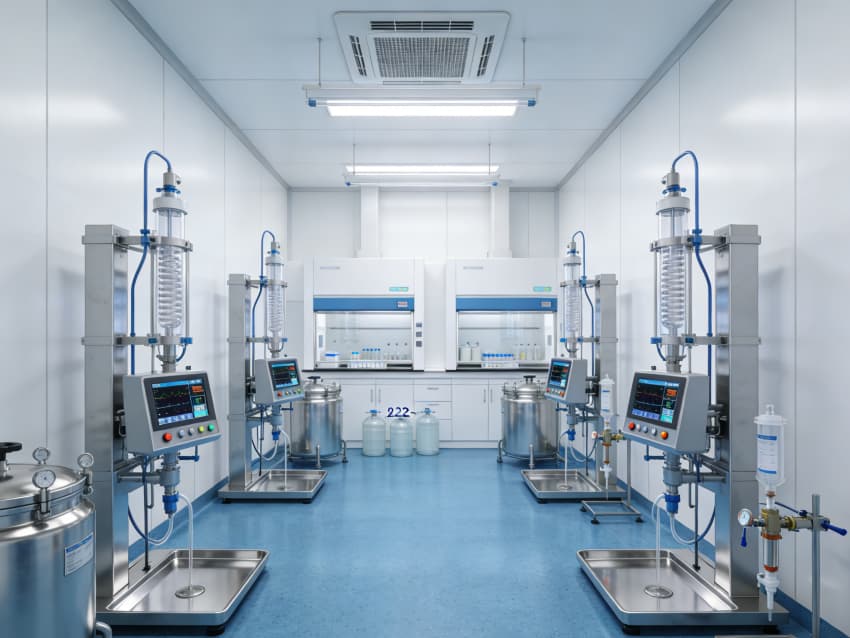 CGT醫(yī)藥研發(fā)生產(chǎn)車間內(nèi)部采用藍(lán)色地面與白色墻壁的簡(jiǎn)約統(tǒng)一風(fēng)格,嚴(yán)格契合GMP最高等級(jí)潔凈規(guī)范,精準(zhǔn)匹配細(xì)胞治療、基因工程等研發(fā)生產(chǎn)的無(wú)菌嚴(yán)苛需求。藍(lán)色地面選用醫(yī)用級(jí)高活性抗菌環(huán)氧自流平材質(zhì),經(jīng)基層拋丸強(qiáng)化、抗菌底漆涂刷、環(huán)氧砂漿找平、抗菌罩面固化四道核心工序,表面平整無(wú)縫隙,具備強(qiáng)效殺菌特性,可耐受高頻次過(guò)氧化氫熏蒸、酒精擦拭等清潔消毒作業(yè),杜絕微生物滋生與交叉污染。