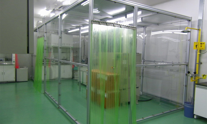 2、防靜電垂簾:四周?chē)梅漓o電垂簾(或鋼化玻璃),防靜電效果好、透明度高、網(wǎng)格清晰、柔韌度好、不變形、不易老化;