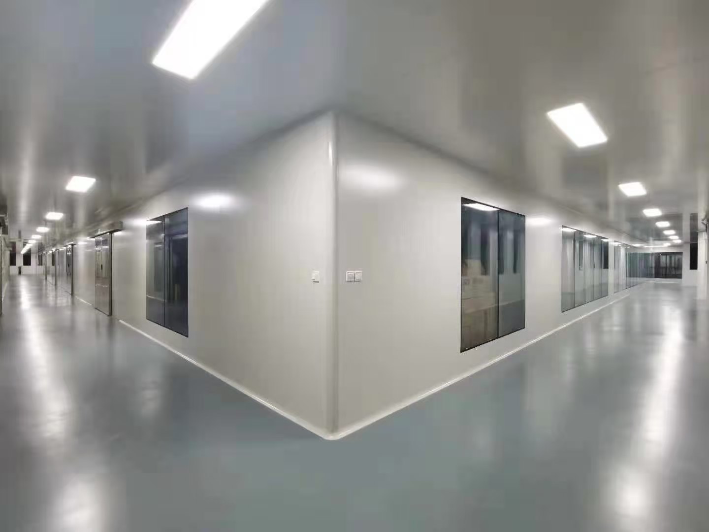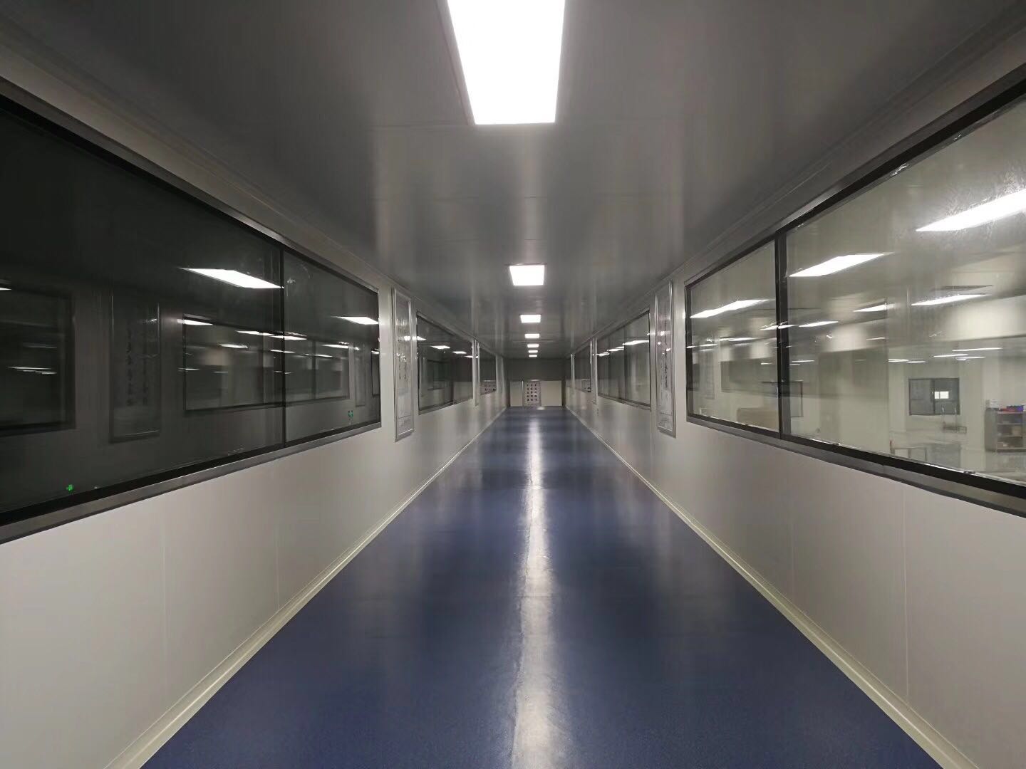 1.采用凈化車間施工專用彩板。底板頂板采用寶鋼0.4鋼板制造,芯材密度達(dá)14kg/m3,鋁材采用華聯(lián)特殊鋁型材,以提高凈化室的使用壽命,達(dá)到美觀效果外觀,所有鋁型材進(jìn)行電泳處理。