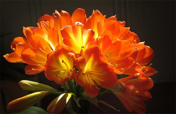 君子蘭之所以特別受人喜愛,不僅是由地它鮮艷嬌美的花容,更由于它具有一種其他花卉所無可比擬的優(yōu)越性:這就是它既有令人賞心悅目的花朵,更有值得欣賞的碧綠光亮、猶如著蠟、晶瑩剔透、光彩照人的葉片。