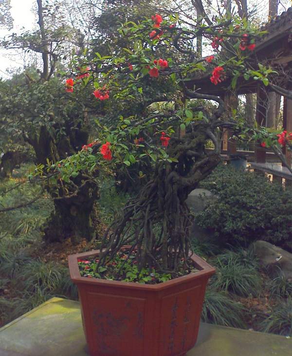 貼梗海棠盆景造型獨特,看完了這么多的盆景造型,是不是覺得太神奇了;自然的生長再加上人為巧妙的攀扎整形,一盆盆不一樣的造型就制作出來了。
