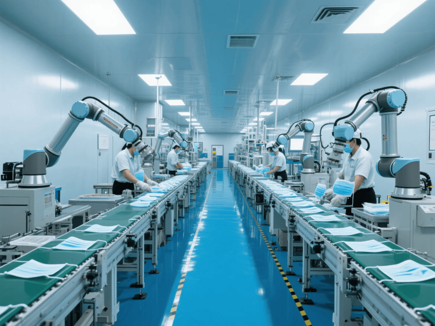 本方案采用"醫(yī)療工業(yè)極簡風",符合YY/T0969-2013口罩行業(yè)標準。車間按功能分區(qū):