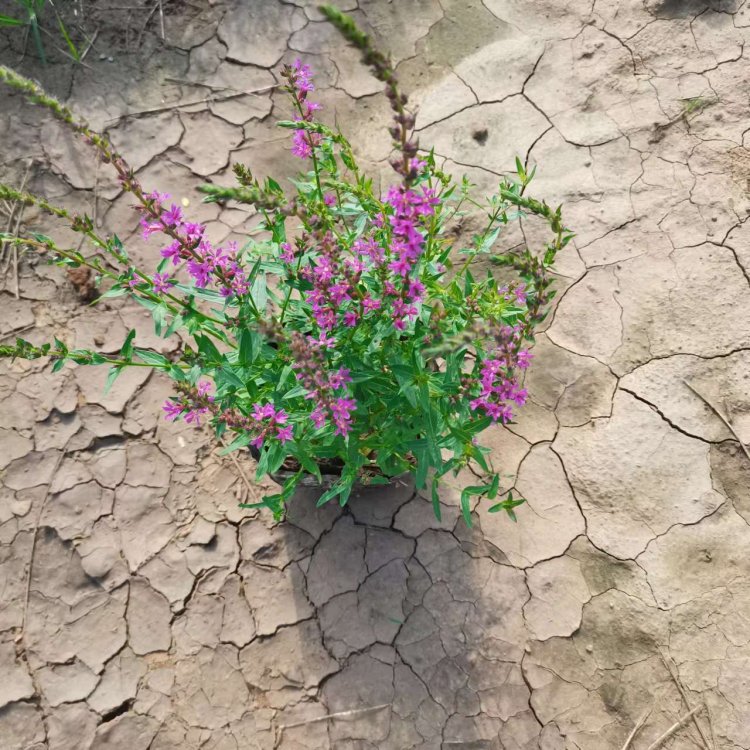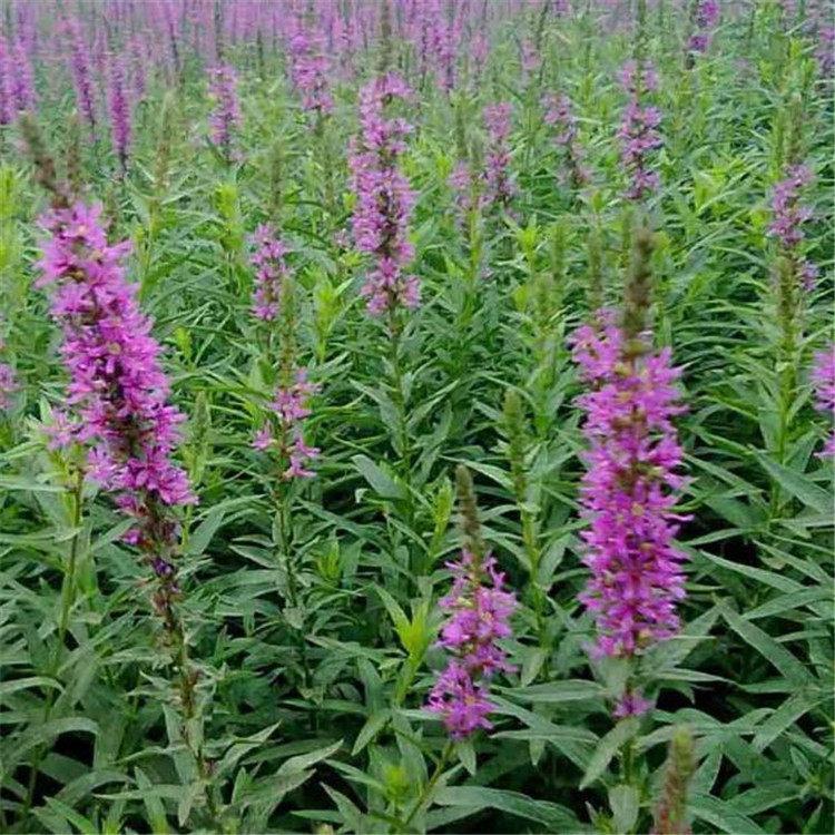 千屈菜又叫水枝柳、水柳、對葉蓮等,多年水生宿根草本植物,植株高約1米,直立生長,主桿上有許多分枝,葉子對生,披針形。葉子長4~6cm,寬1cm左右??偁罨ㄐ蹰L在最上面,長約30cm,花朵簇生。喜歡溫暖濕潤陽光充足的環境,在我國南方和北方地區都有野生的,生長在沼澤、湖畔、池塘等淺水地區。它耐寒性強,在山東、河南、北京等地均可自然越冬,霜降以后地面部分枯死,地下部分進入泥土休眠,在淺水的河邊和低洼潮濕的地方生長態勢最好,對土壤的要求不嚴。千屈菜的生命力極強,管理也可粗放,栽培的環境只要保證光照充足、通風良好即可,在生長期要經常打頂促使其矮化分蘗,長出豐滿茂密的株型。